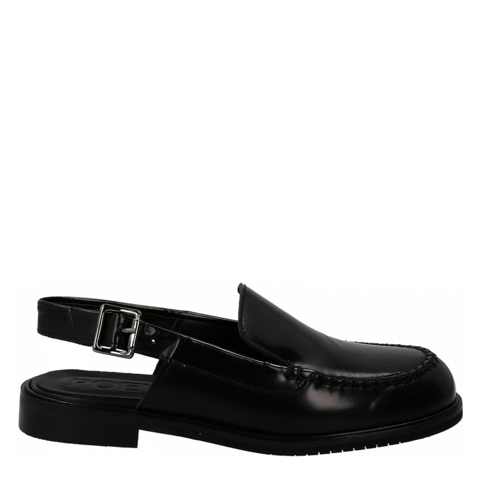 I mocassini slingback Alix sono una reinterpretazione audace di una silhouette classica. Realizzati in pelle nera spazzolata, presentano dettagli cuciti a mano con grande cura per una finitura raffinata. Il cinturino slingback regolabile con fibbia argentata garantisce una calzata sicura, mentre la suola leggera offre un comfort moderno. Suola in gomma con tacco di 2,5 cm. Made in Italy.