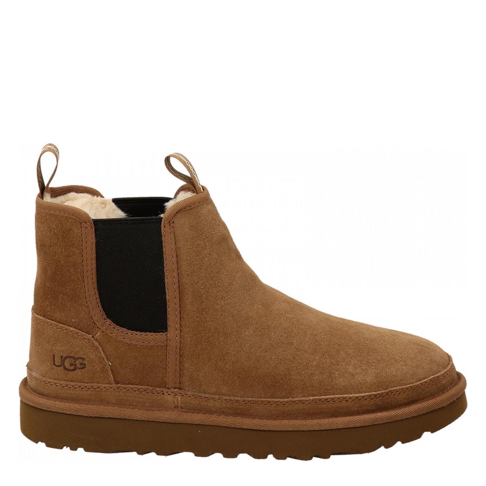 Lo stivale Chelsea Neumel combina materiali di prima qualità e stile casual. Realizzato in pregiata pelle scamosciata con inserto elasticizzato e tiranti e rifinito da un bordo in tessuto realizzato con fibre di poliestere riciclato (100%). Foderato in misto lana UGGplush™ e completato da una resistente suola in EVA. È un modello leggero, comodo e flessibile, perfetto ovunque tu vada.
