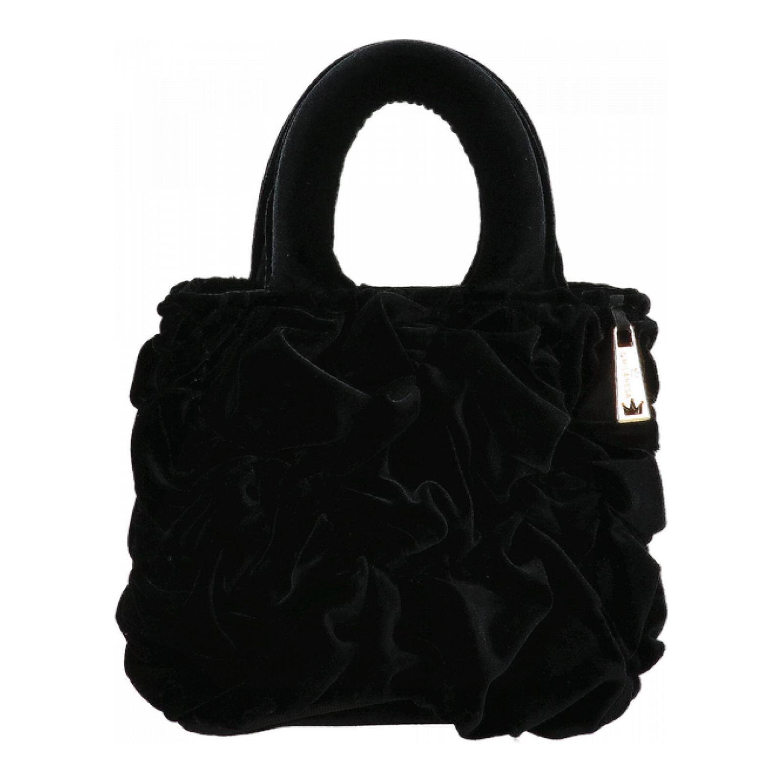 Borsa piccola a mano in velluto nero effetto goffrato, con chiusura a calamita e tracolla lunga regolabile. Interno in tessuto con taschino. Made in Italy.