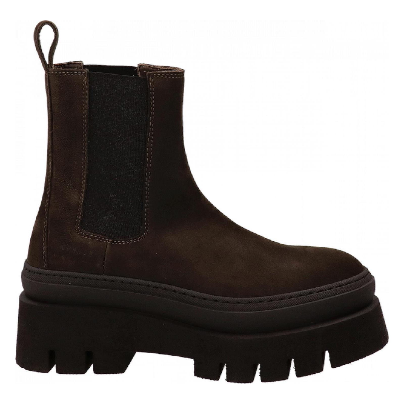 Chelsea boots monocromatici, realizzati in morbida pelle nabuk con inserti elastici e tirante sul retro per facilitare la calzata. Suola grossa in gomma con carrarmato altezza 5 cm. Soletta interna imbottita e removibile.
